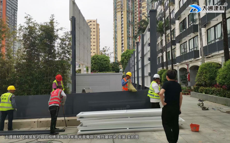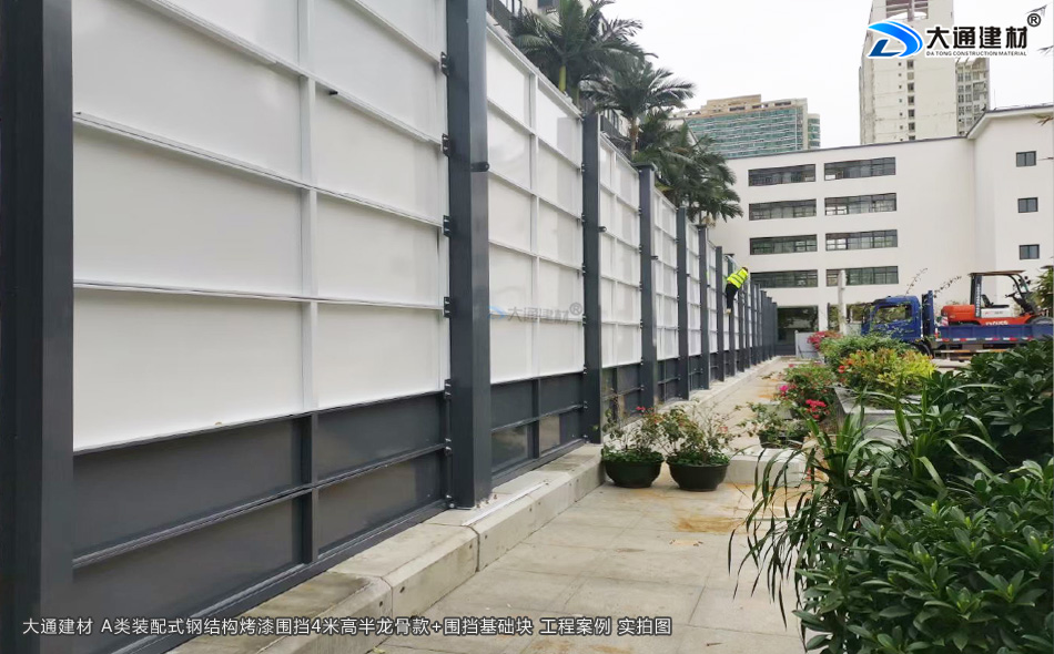 大通建材 A類裝配式鋼結(jié)構(gòu)烤漆圍擋半龍骨4米高定制款+圍擋基礎(chǔ)塊 現(xiàn)場(chǎng)安裝