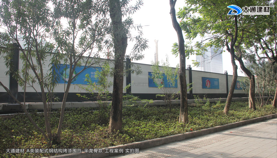 廣東省深圳市南山區前海路的棉山路至媽彎大道段工程項目使用了大通建材生產銷售的A類烤漆鋼圍擋2.5米高半龍骨款、圍擋基礎塊、標準工地大門等產品