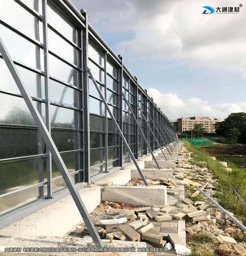 深圳市大通建材生產(chǎn)的C類裝配式鍍鋅鋼結(jié)構(gòu)圍擋4米高定制款,把深圳市龍華區(qū)建筑工程施工現(xiàn)場圍起來,為施工安全保駕護(hù)航。