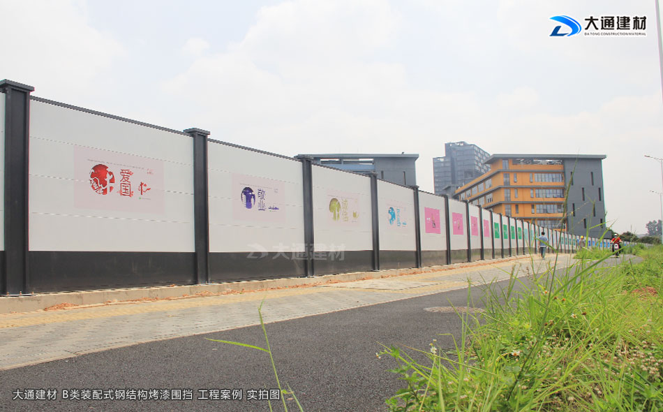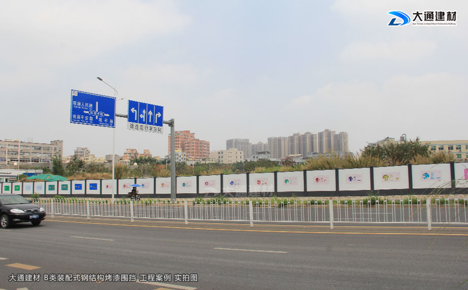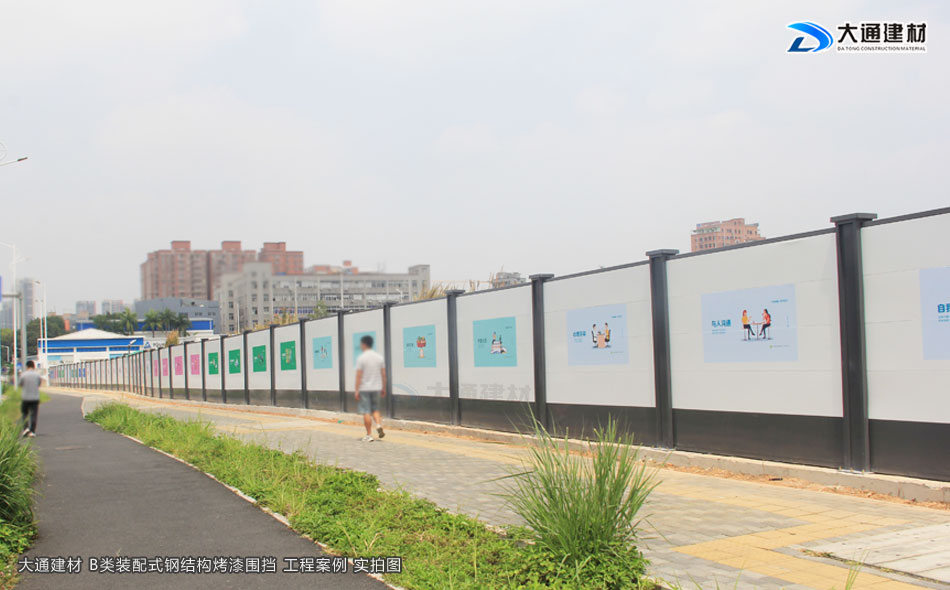 深圳市大通建材有限公司生產(chǎn)的符合深圳標(biāo)準(zhǔn)的裝配式B型圍擋,是一款新型鋼結(jié)構(gòu)圍擋,具體有美觀、環(huán)保、抗風(fēng)力強(qiáng)等特點(diǎn),已廣泛應(yīng)用到深圳特區(qū)建設(shè)的各類施工工程項(xiàng)目中,以下展示的圍擋圖片是大通裝配式B型圍擋應(yīng)用到深圳龍華觀瀾人民路的工程案例。