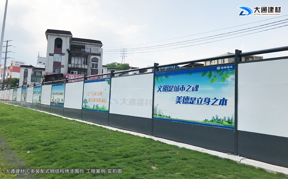 施工安全方案解決工程師,24小時(shí)在線等候您的咨詢!深圳市大通建材有限公司10多年來一直從事圍擋生產(chǎn)批發(fā)工作,在東莞設(shè)有大型鋼結(jié)構(gòu)圍擋生產(chǎn)基地,那么大通建材C類裝配式鋼結(jié)構(gòu)圍擋烤漆款有怎樣的規(guī)格特點(diǎn)呢?現(xiàn)在就與大通鋼結(jié)構(gòu)圍擋小編一起了解一下吧。