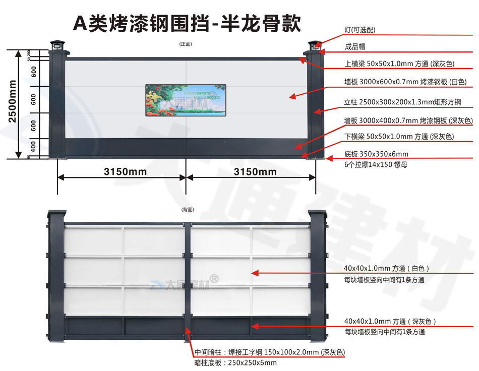 大通建材A類鋼結構烤漆圍擋半/無龍骨款適用于市政建設施工、房地產項目施工、地鐵項目施工、管網改造、小區改造、城市建設、道路施工等工程使用