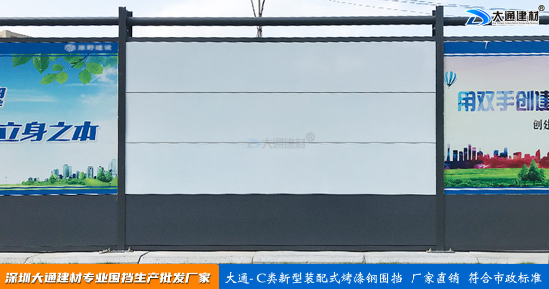 大通建材C類裝配式鋼結構圍擋-烤漆款,具有 美觀環保、拆裝便利、快速拼裝,結構牢固,安全性高,經久耐用等特點,已廣泛應用于深圳、東莞、惠州、廣州、汕頭、珠海、佛山、浙江等地區的工地施工項目中。