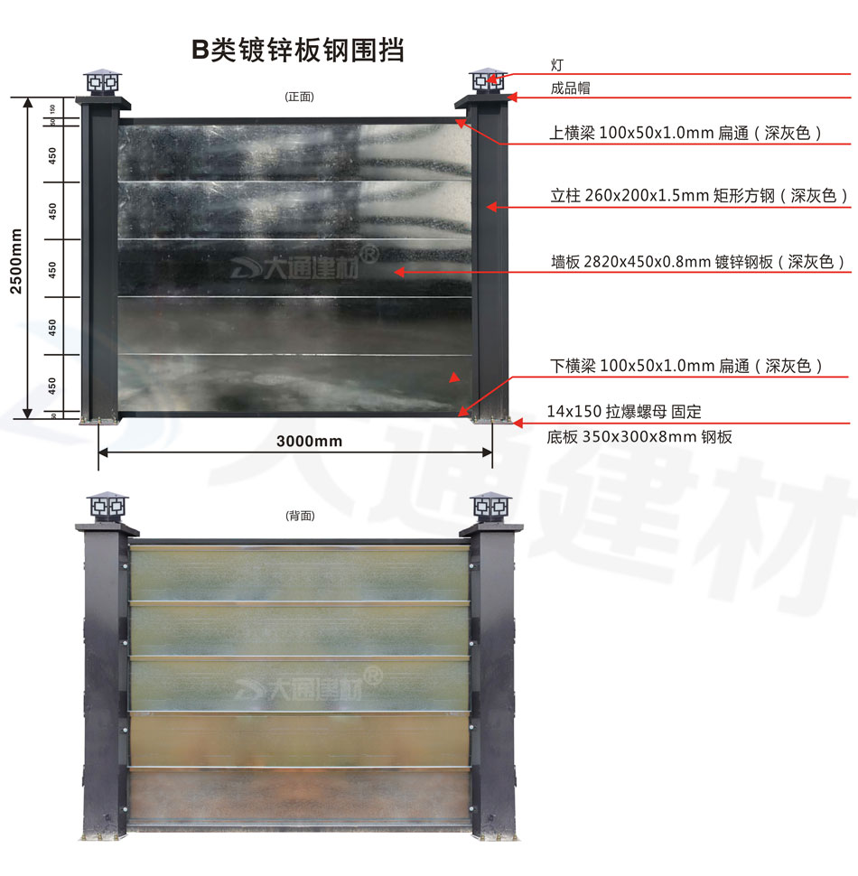 深圳市大通建材 B類鋼圍擋-鍍鋅板款 工程鋼圍擋 安裝說(shuō)明