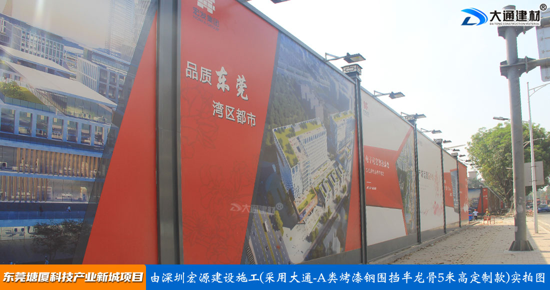 深圳大通建材生產的A類烤漆鋼圍擋半龍骨5米高定制款適用于各種市政工程建設施工、房地產項目建設施工、地鐵修建項目施工、管網改造、小區改造、城市建設、道路修建施工等工程使用