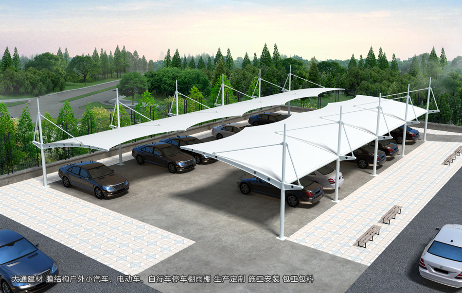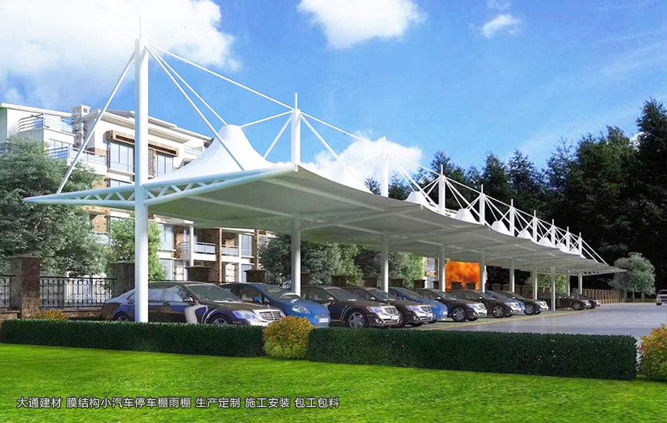 深圳大通建材小汽車充電樁鋼膜結構停車棚雨棚是指一種采用鋼結構和膜材料相結合的停車設施。它以其獨特的造型、輕盈的結構和實用的功能,受到了廣泛的關注和應用。在城市道路、商業廣場、住宅小區等場所,都可以看到膜結構停車棚雨棚的身影。深圳市大通建材是各類鋼膜結構停車棚生產源頭廠家 專業團隊 可按實際需求定制化生產 可包工包料 更多詳情請致電 13826562448 梁先生