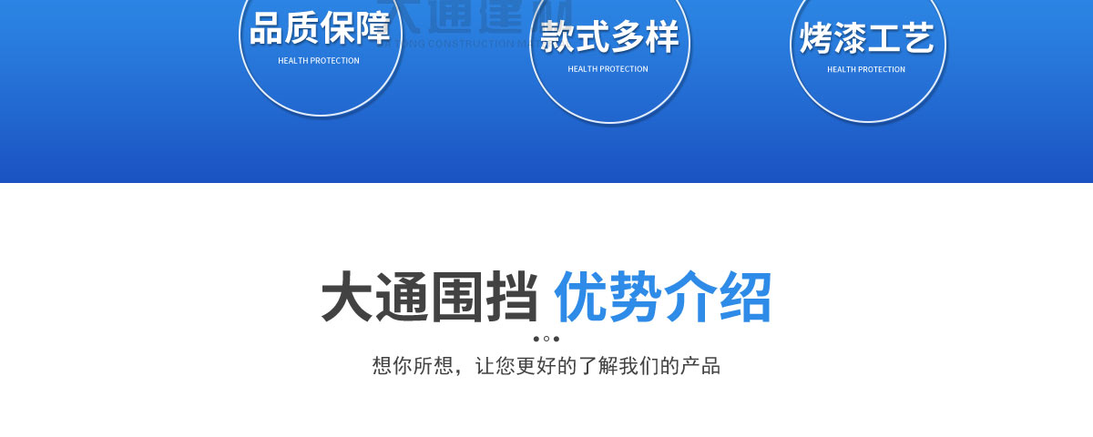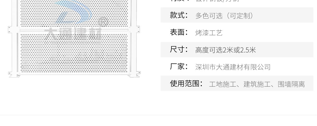 深圳市大通建材有限公司是一家集研發、生產、安裝、服務于一體的綜合性圍擋廠家,公司主營產品鋼圍擋、鋼結構圍擋、PVC圍擋、施工圍擋、市政圍擋、工地圍擋、烤漆鋼圍擋,官網:http://m.henggai.cn/ ,銷售熱線:138 2656 2448